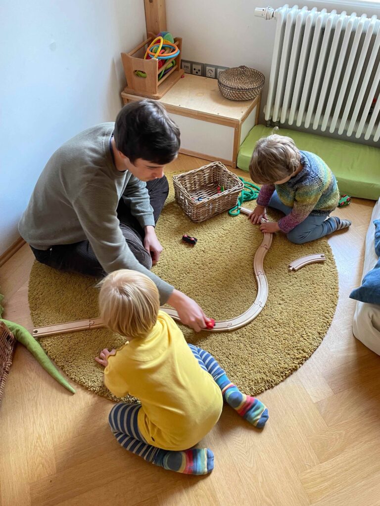 Ich mache mir öfter Sorgen, dass die Kinder sich verletzen könnten, besonders wenn sie hoch klettern. Ich saß mit einem Kind auf einer Tischtennisplatte, und natürlich wollten die anderen beiden auch mit hoch. Nancy hat mir dafür einen super Tipp gegeben: Die Kinder klettern nur da hoch, wo sie selbst hochklettern können. Das ist tatsächlich eine super Regel, die einem sehr viel Stress abnimmt – besonders wenn man mit mehreren Kindern unterwegs ist und nicht alle gleichzeitig direkt absichern kann. Ich war bisher ziemlich hilfsbereit, besonders wenn die Kinder mich so lieb fragen, aber da muss ich jetzt wohl einfach konsequent sein.